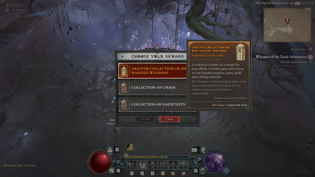 Gambling through Grim Favors is a bit more random compared to the Helltide events because after completing enough Whispers required to obtain 10 Grim Favors, you can only choose one of three Collections that are randomly offered to the player.