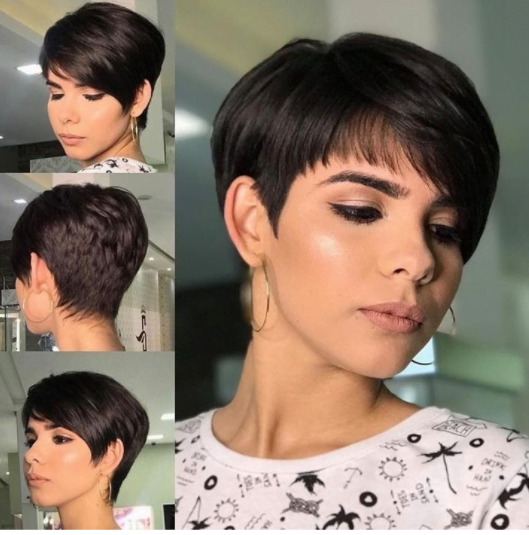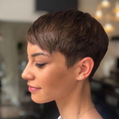 Not everyone knows it, but a good pixie looks like a true masterpiece, without any exaggeration involved. This dark chocolate pixie with well-trimmed back, side, and front bangs may take a while to cut and style, but the result will be worth every second and ounce of energy spent in the process!